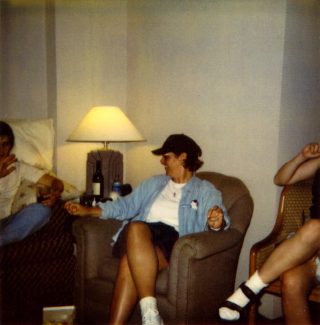 (McKee with Bridie, Huff (left) and I have no idea who's legs.)